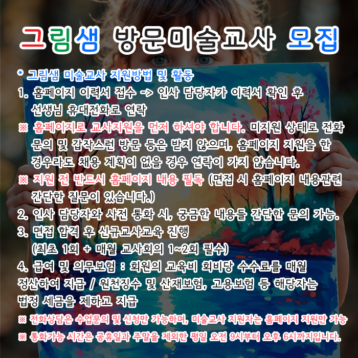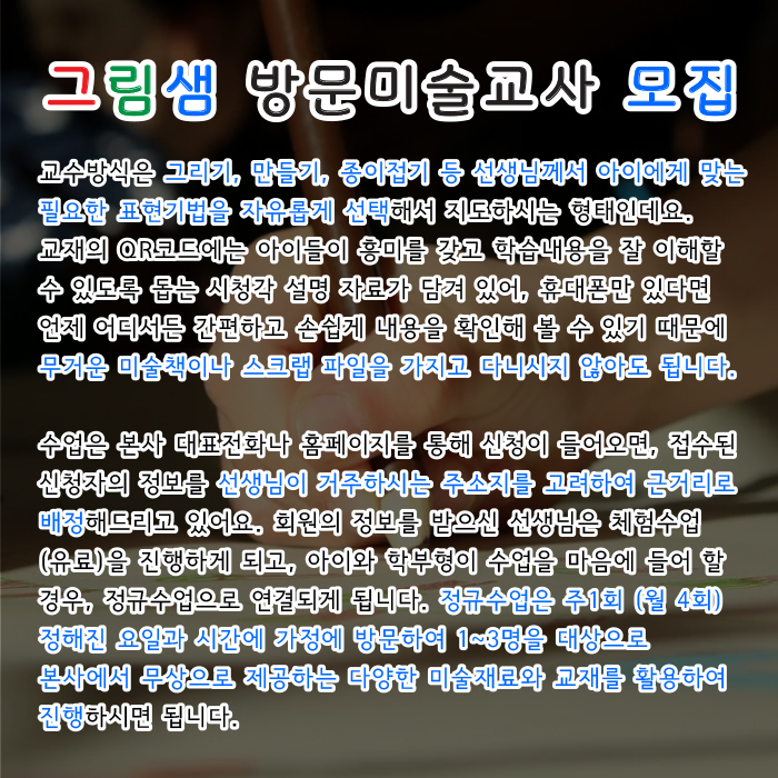 그림샘 방문미술 미술선생님 모집 안내