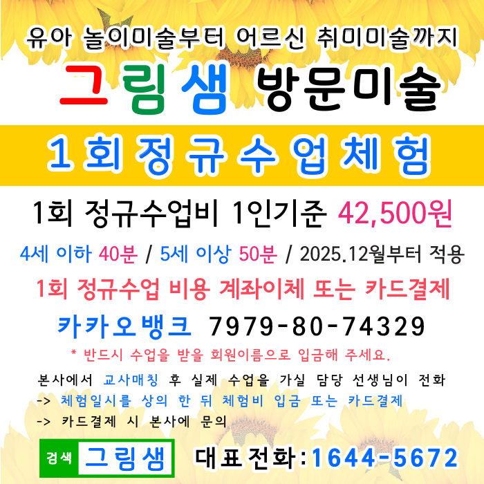 ③ 참가자격 : 그림샘 정규수업 등록 중인 회원은 1회 무료 참여. ※ 형제, 친척, 지인 등은 유료